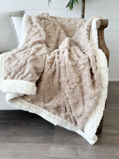 IN STOCK Cable Knit Sherpa Blanket - Tan