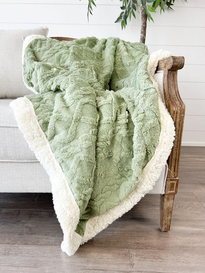 IN STOCK Cable Knit Sherpa Blanket - Sage