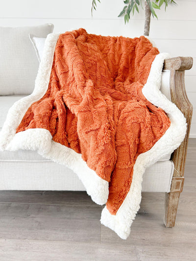 IN STOCK Cable Knit Sherpa Blanket - Pumpkin