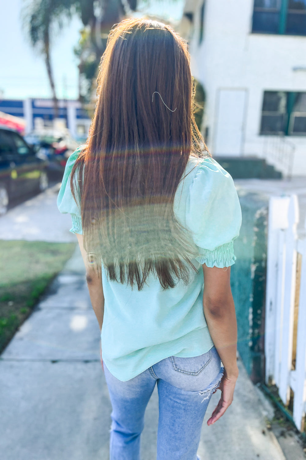 Notched Neck + Smocked Short Sleeves + Woven