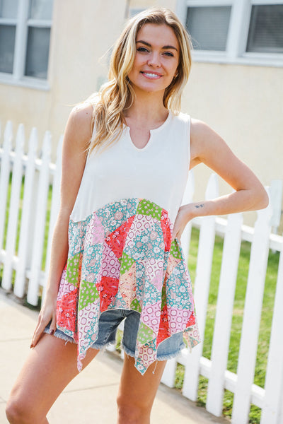 Feeling Femme Beige Patchwork Notched Neck Shark bite Top