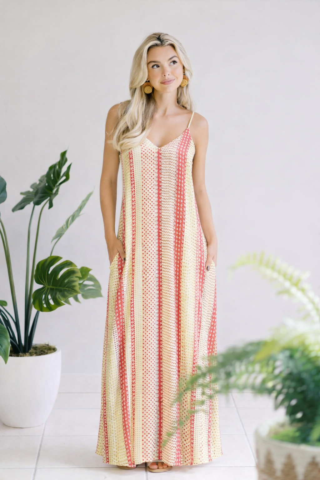 Rule the fashion game in our Behold Your Queen Maxi, featuring a v-neck and spaghetti straps for a flirty touch. The flowy fit guarantees comfort while the side pockets add practicality. Say hello to your new wardrobe staple!