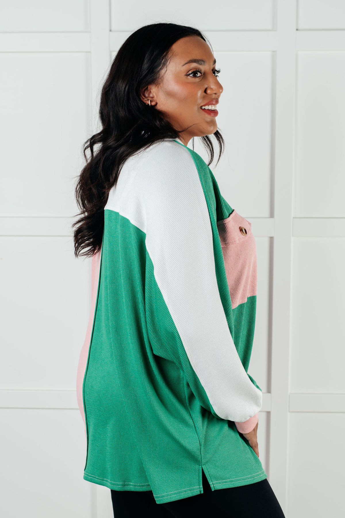 Get ready to mix and match with our Chip Off the Old Colorblock V-Neck Henley! This eye-catching top features a ribbed knit texture, collared neckline, and dolman sleeves for an effortlessly stylish look. The half front button closure and functional chest patch pockets add practicality while the banded sleeve cuffs add a touch of flair. Perfect for any occasion, this top will become your new go-to!
