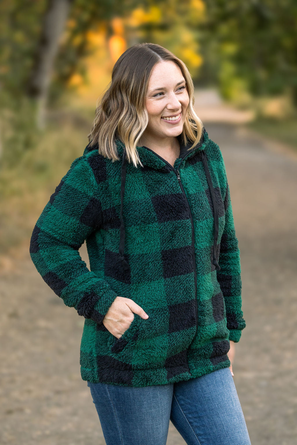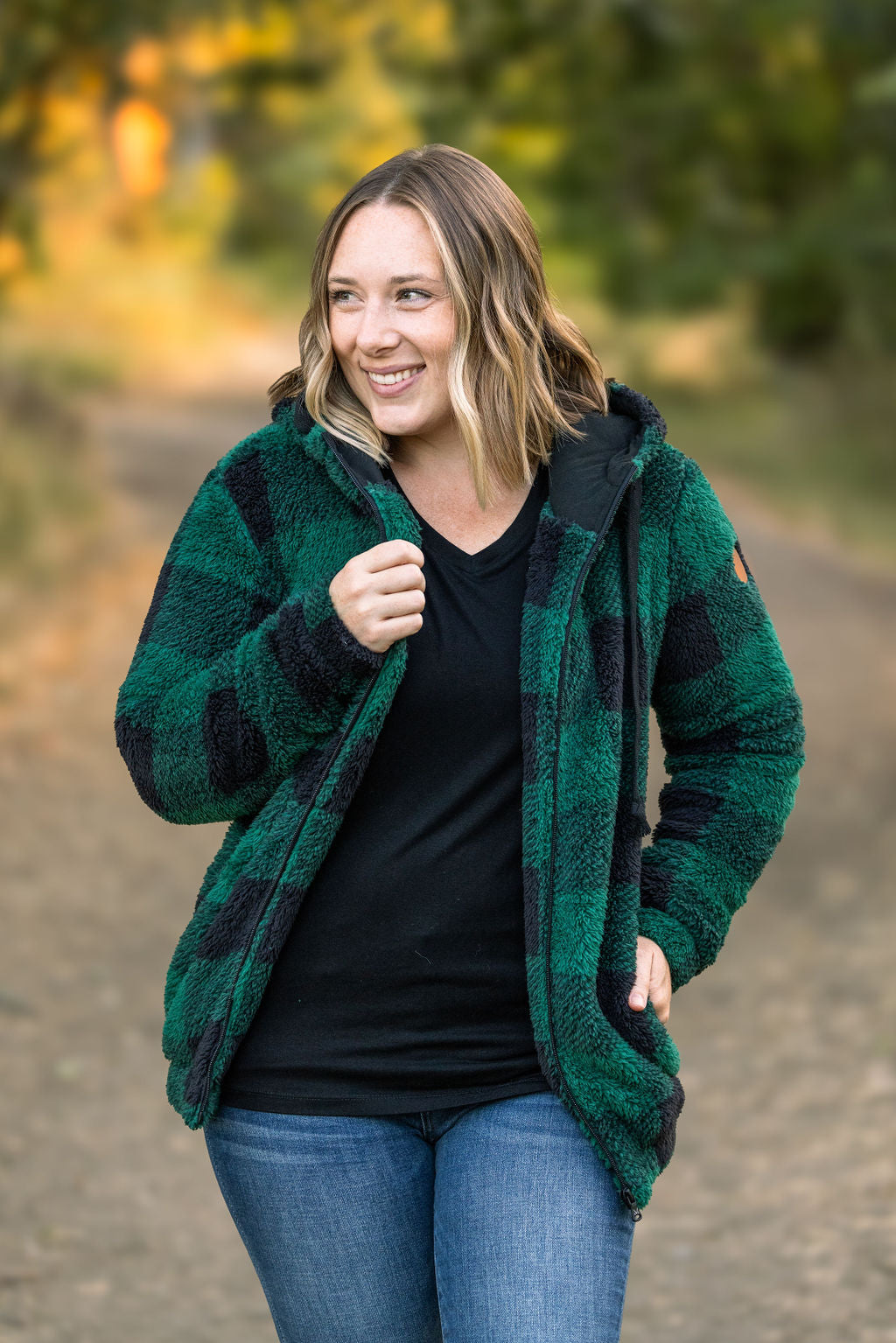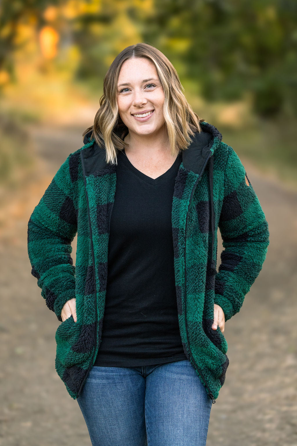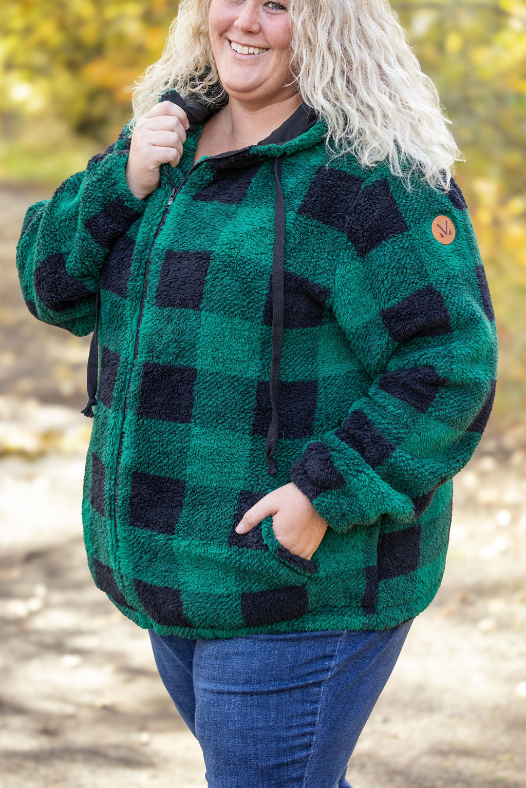 Two of our favorite things: sherpa and a fullzip hoodie are now in ONE! Amazing and cozy sherpa fabric with classic (and stretchy) wrist cuffs and bottom! This one is sure to keep you comfy all the time! Interior of hoodie has a black liner.
