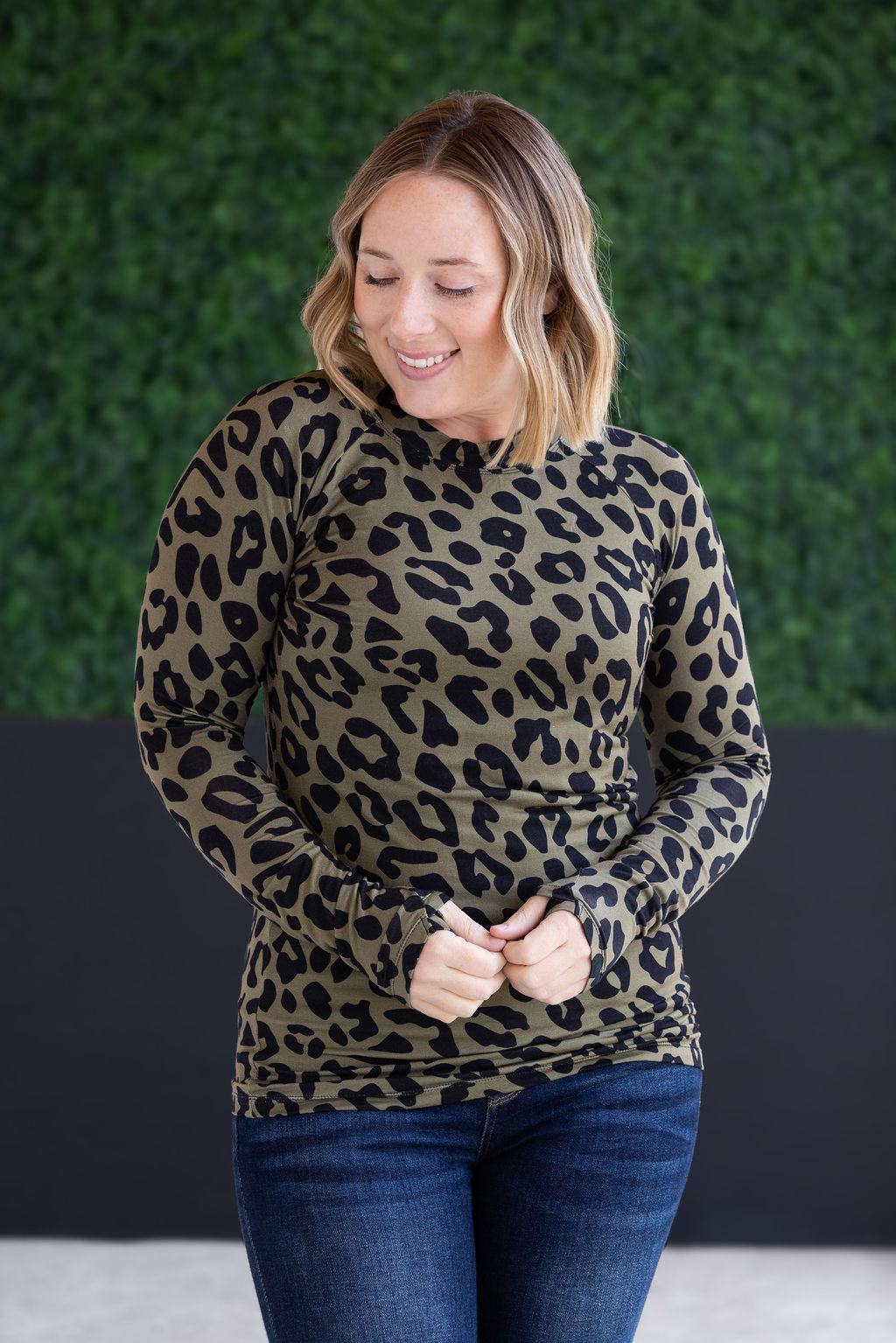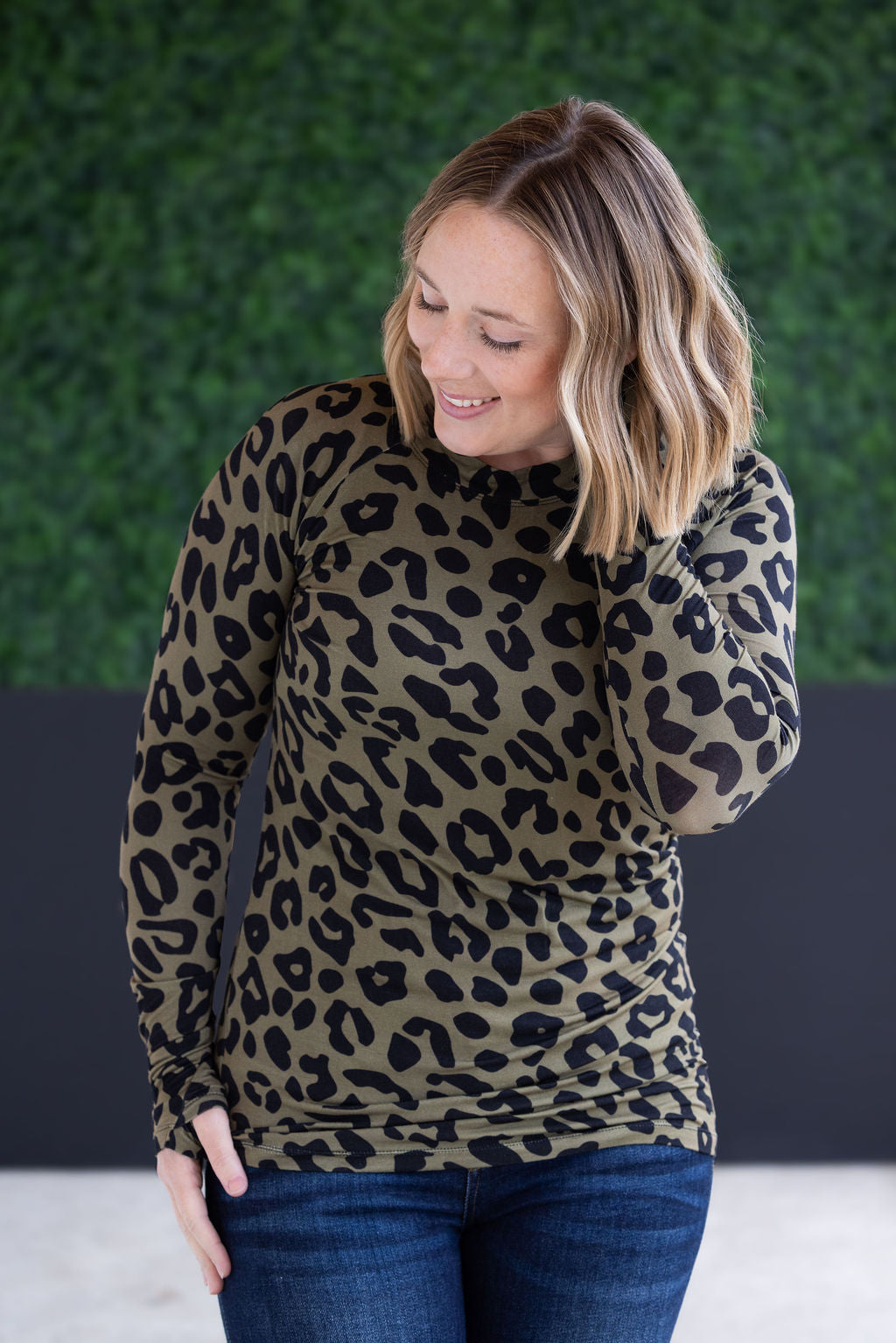 IN STOCK Blair Long Sleeve Top - Olive Animal Print