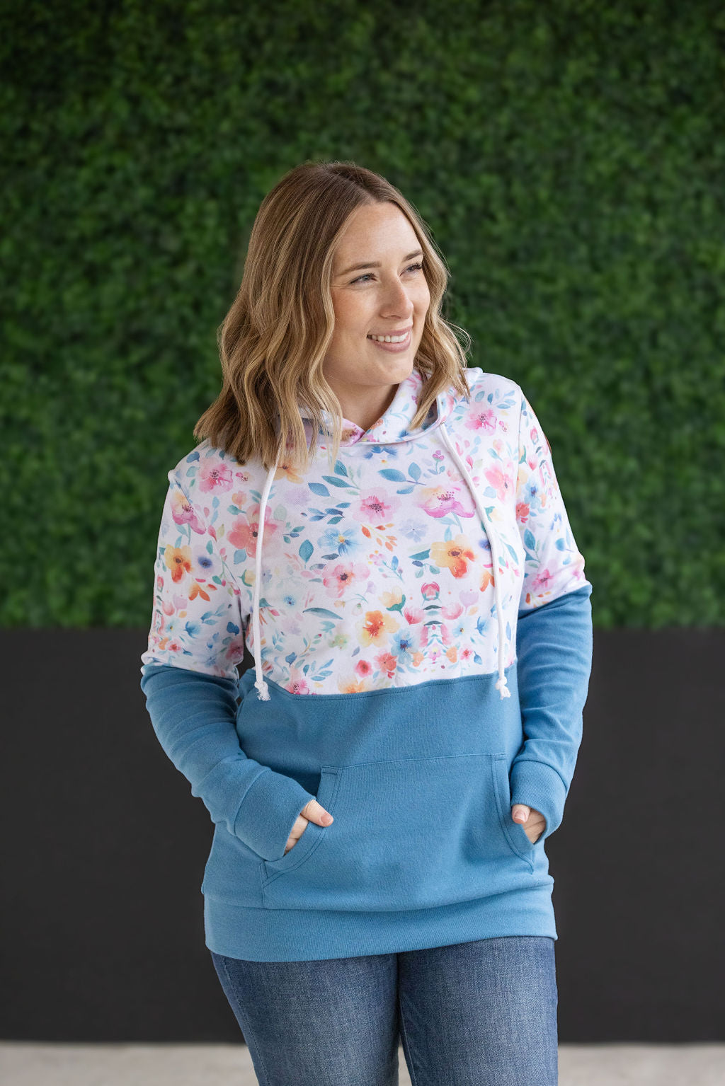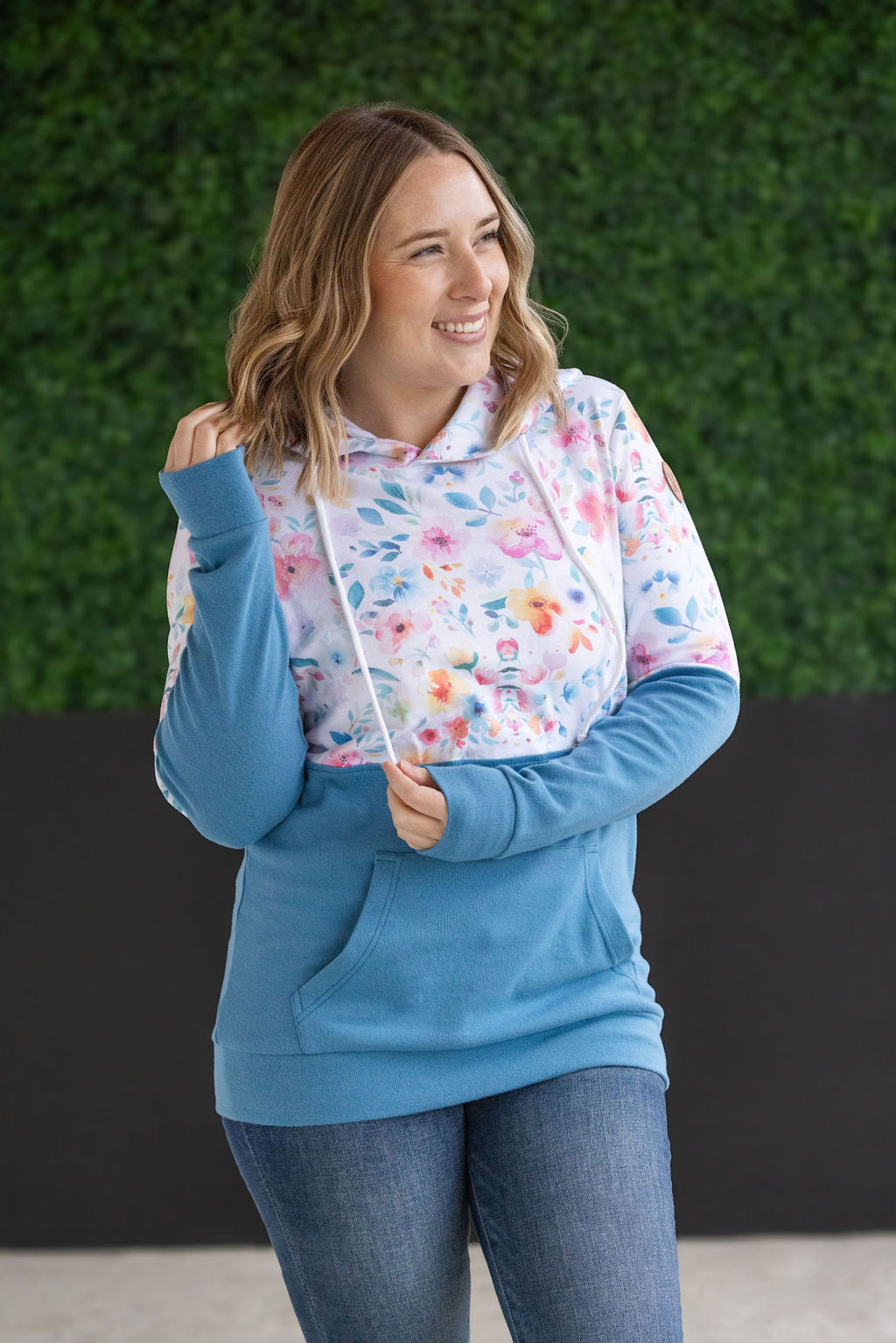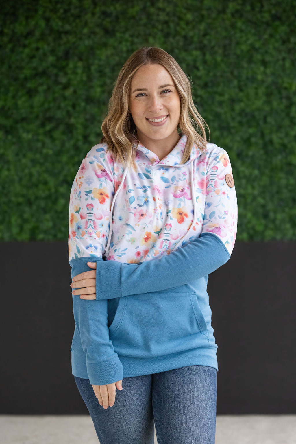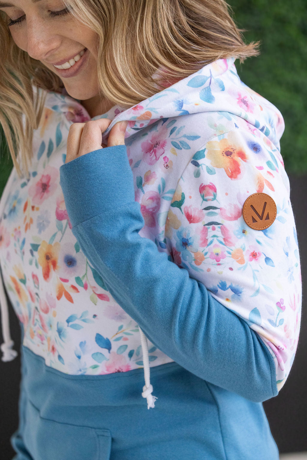 IN STOCK Hailey Pullover Hoodie - Watercolor Floral + Blue
