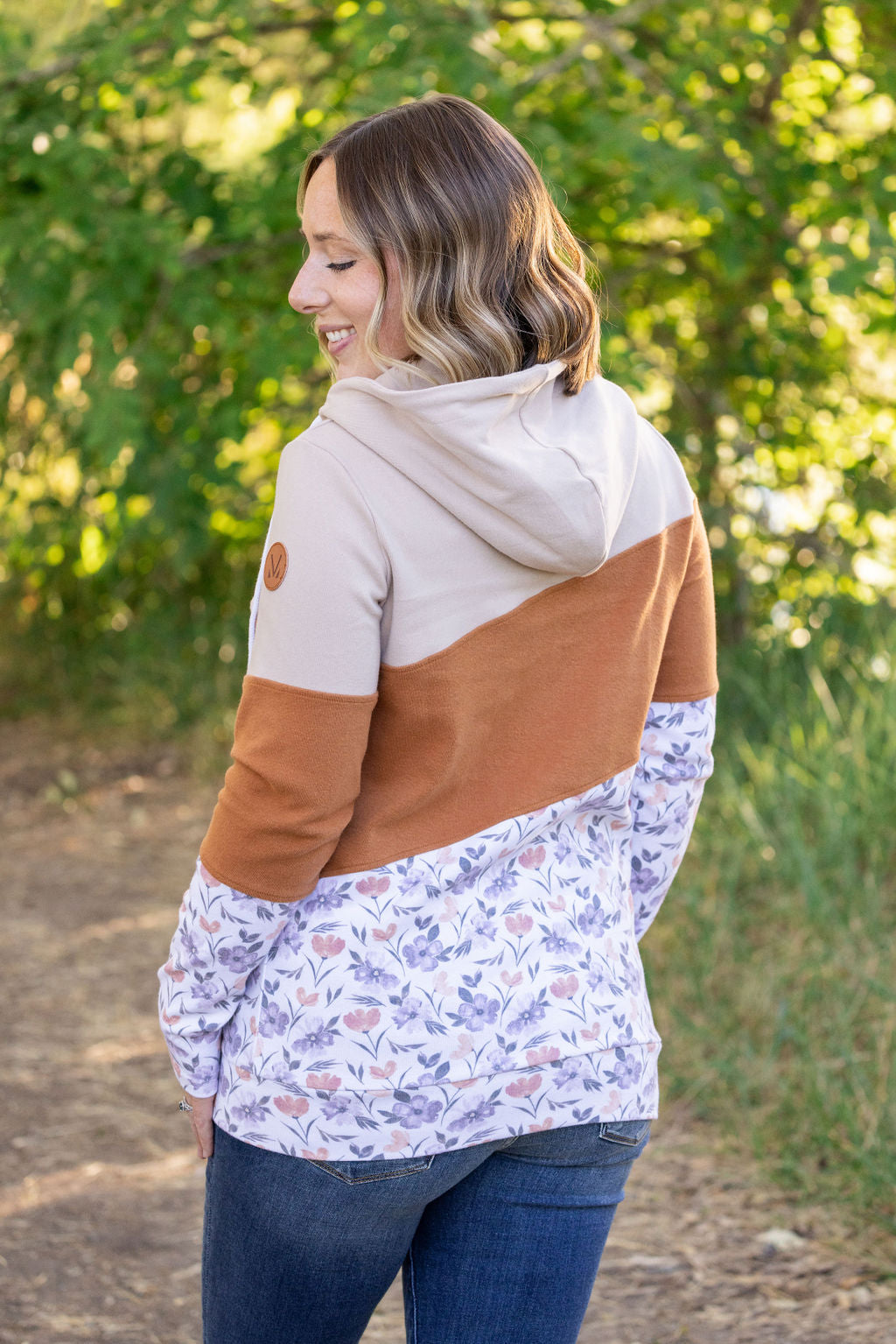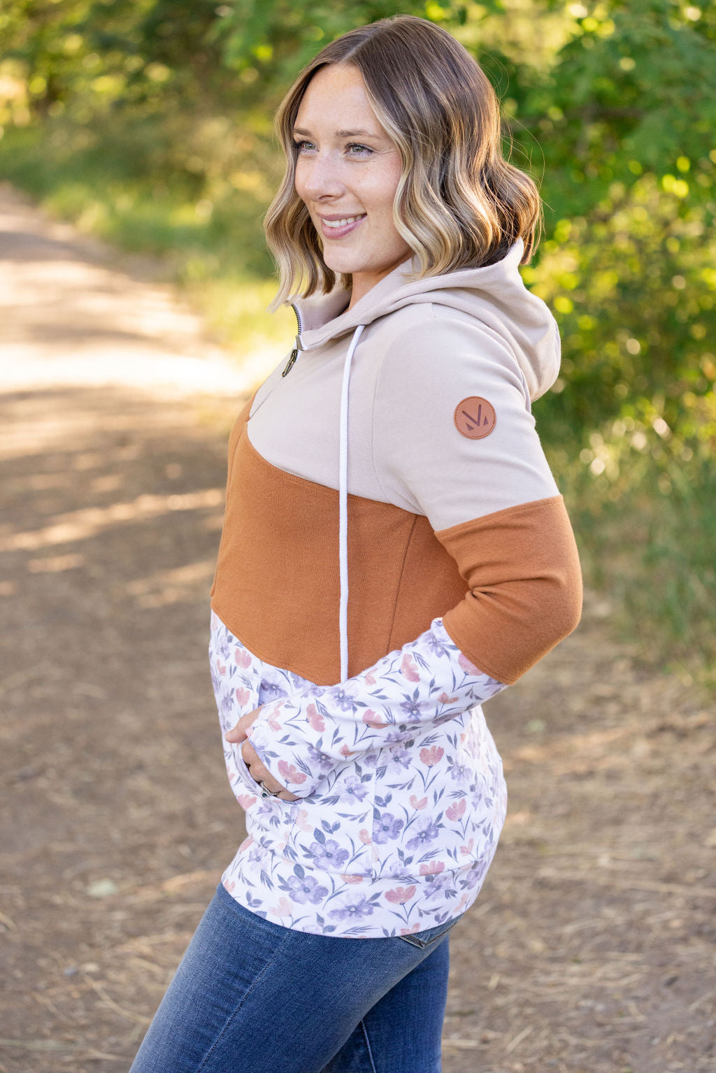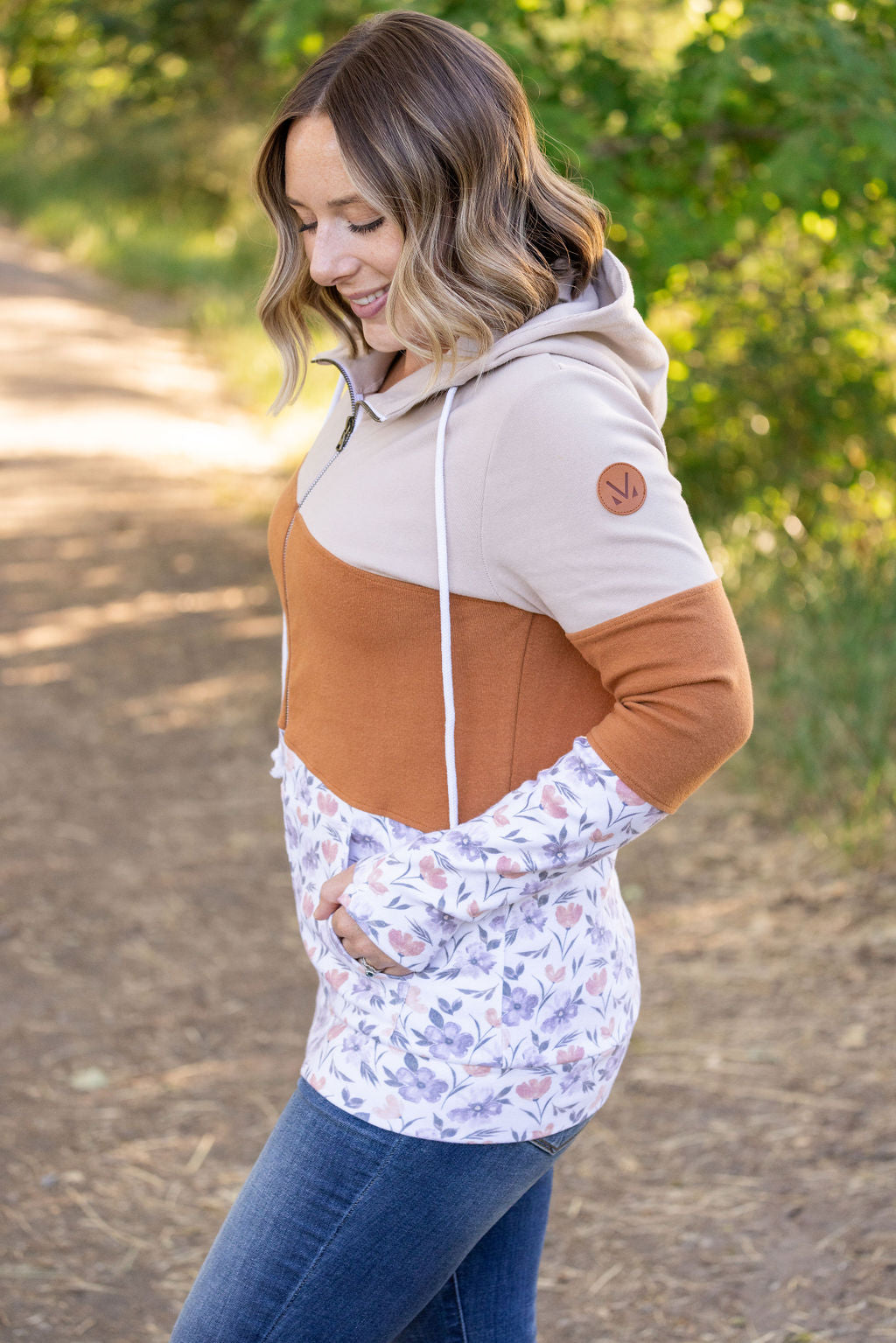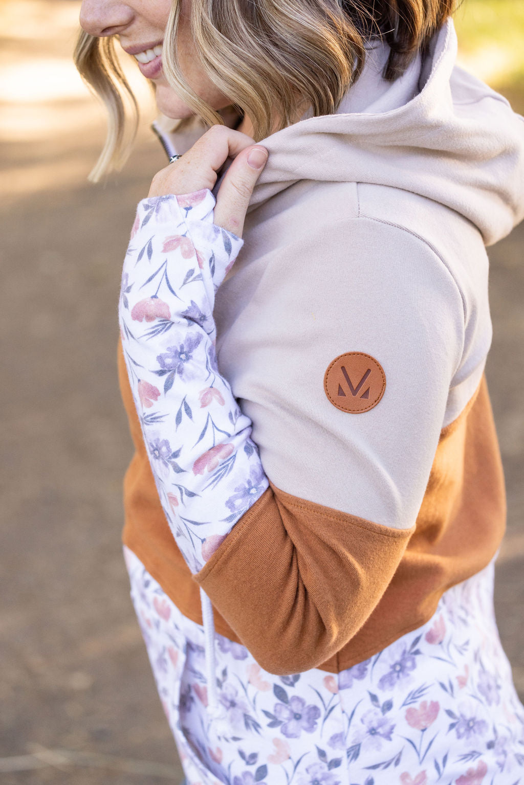 Experience ultimate comfort and style with our Colorblock Fullzip. Made from a triple stretch fabric, this hoodie offers a perfect fit and freedom of movement. Its colorblock design features a warm and inviting blend of tan on the top, a rust camel in the middle, and the harvest floral mix on the bottom, making it the perfect addition to your wardrobe.